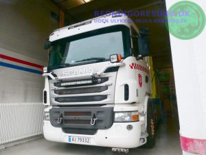containerbil a-46 scania 480 2011 står med entrepanørcontainer
