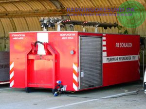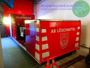 fuldtidsstyrken har containere med særlige slukningsmidler samt slangecontainer