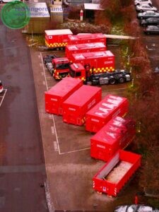 på stationen er der placeret 3 conteinerbiler hvor en er med kran.