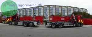 tomsgårdens eget mandskab har speciale i brug og kroghejskøretøjerne hvor den ene er udstyret med kran til diverse løfteopgaver.